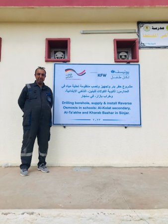 مشروع حفر بئر وتجهيز ونصب منظومة تحلية مياه في المدارس: ثانوية الكولات للبنين، التآخي الابتدائية، وخرب بازار في سنجار